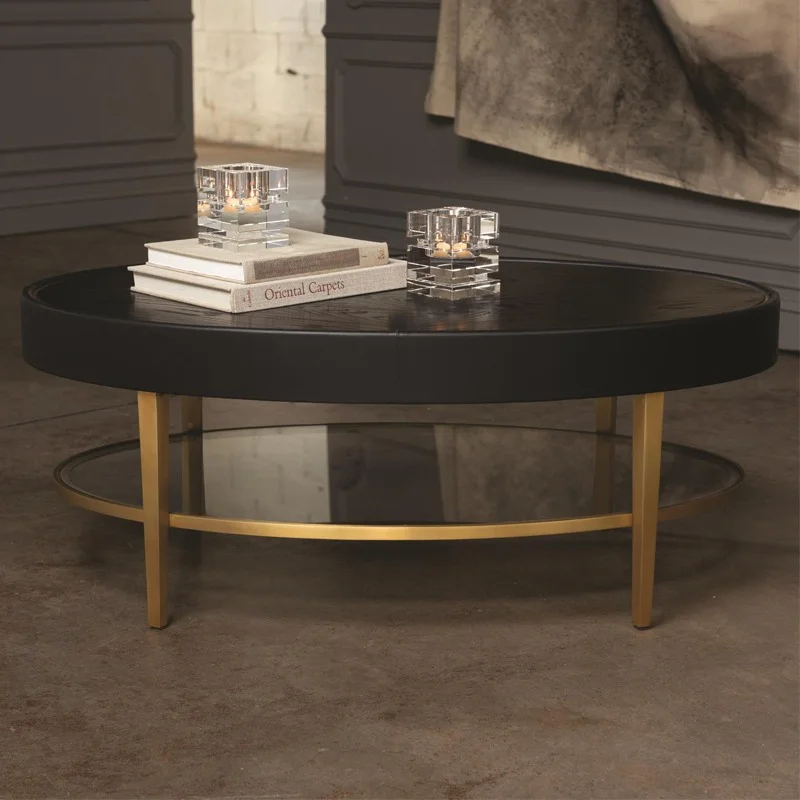 An evocative marriage of golden painted metal (iron), black cowhide leather and black stained wood that allows the natural grain of the wood to still be seen in forms redolent of the upbeat 1920’s! Completely on trend for today’s mood and style; sensual, provocative, and flirtatious.
