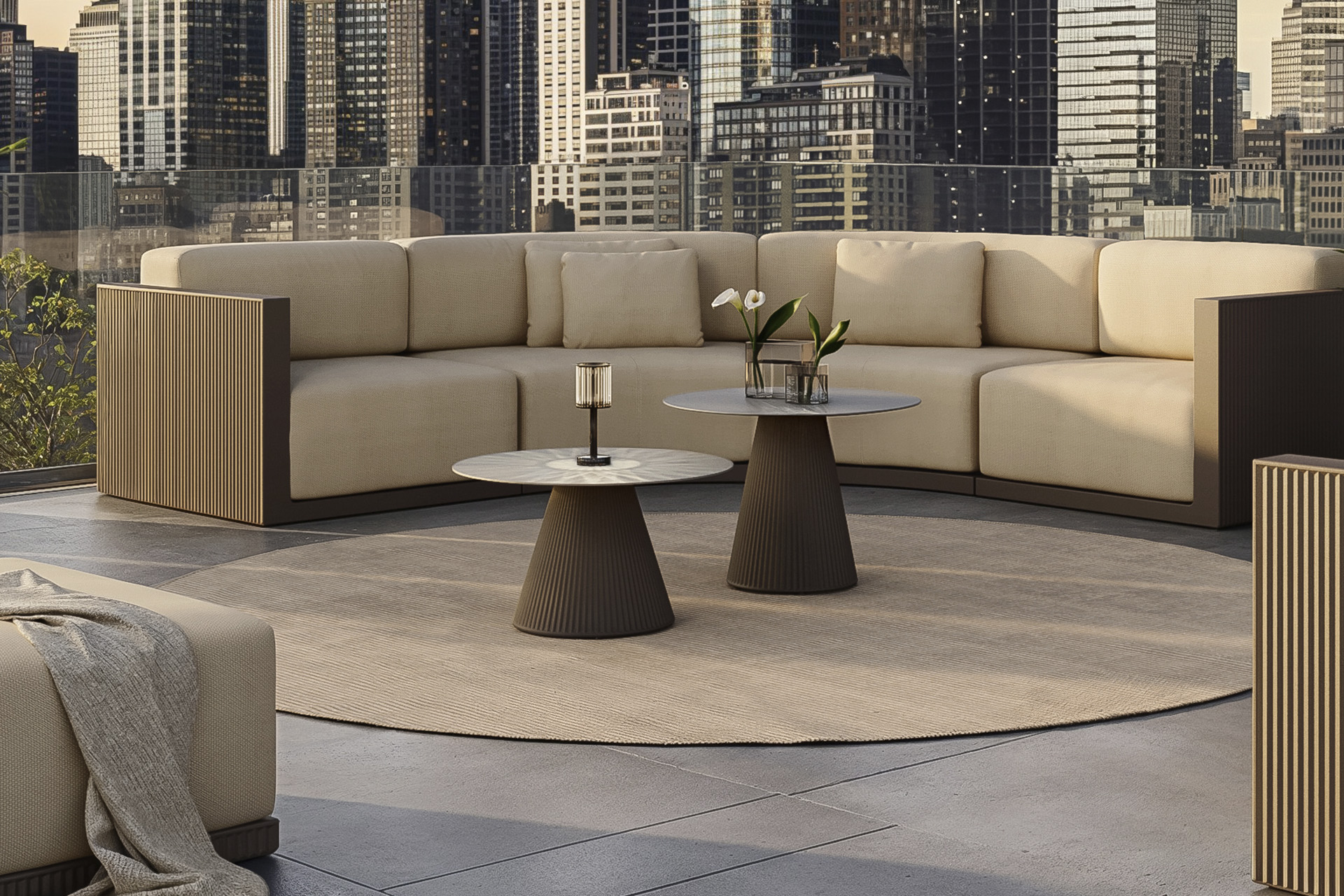 Bring a touch of geometric elegance to custom outdoor tables with the Gatsby Low Table Base. Its faceted design offers a stylish and sturdy foundation, allowing you to pair it with a tabletop to create a unique, modern low table.