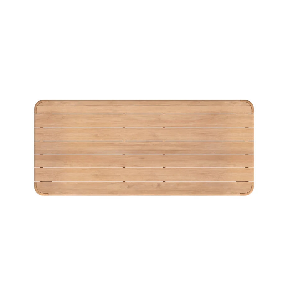 Host stylish outdoor gatherings with the Natural Teak Rectangular Dining Table. This table highlights the natural beauty and durability of teak wood in a clean and contemporary design. Offers ample space for dining and entertaining.