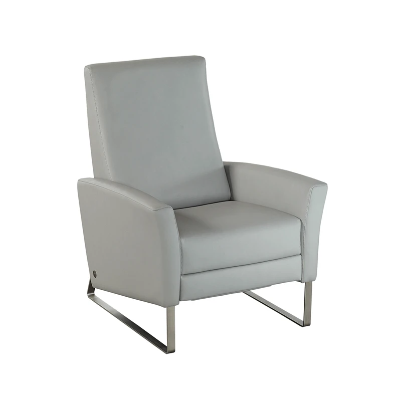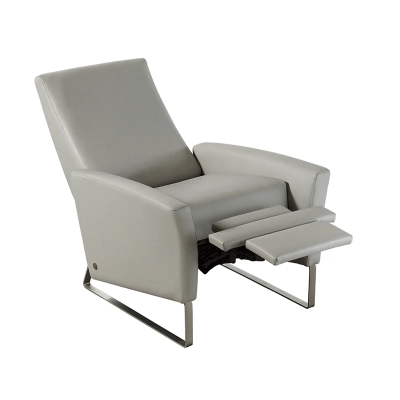 Nico has arms that gently splay outward in an inviting motion, adding a geometric freshness to this angular chair. Designed with a sled leg that cleverly intersects with the upholstery in the back, this chair is alluring from all angles. Expect the unexpected with the Nico the perfect blend of fashion and function with the comfort of traditional recliner.