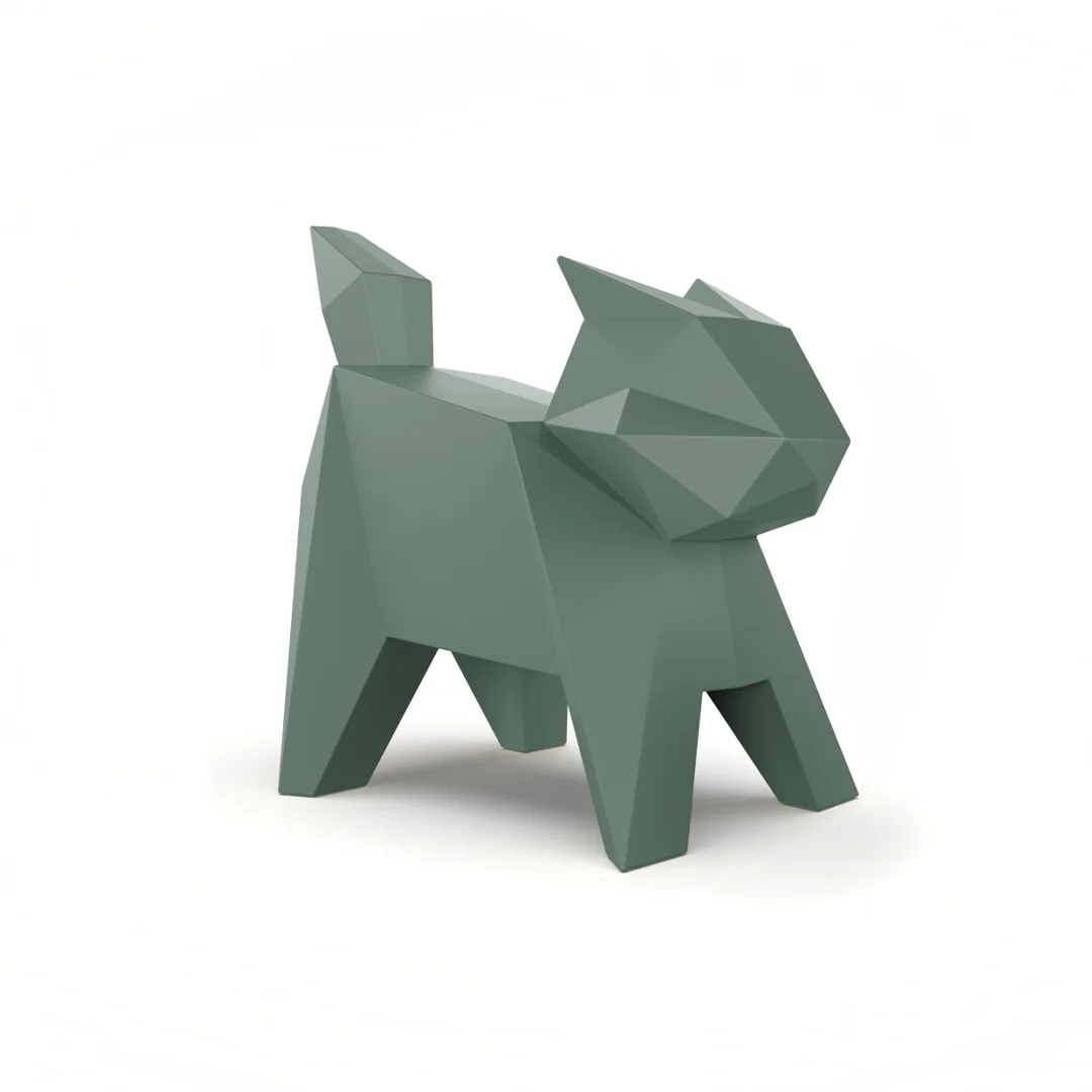 The Origami Neko is a striking, large-scale sculptural cat figure inspired by folded paper. This piece adds bold geometric elegance and modern artistry to your outdoor area, serving as a unique decorative accent.