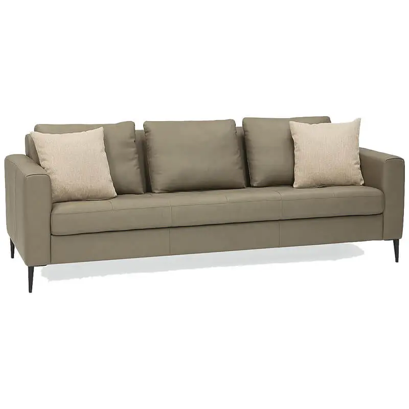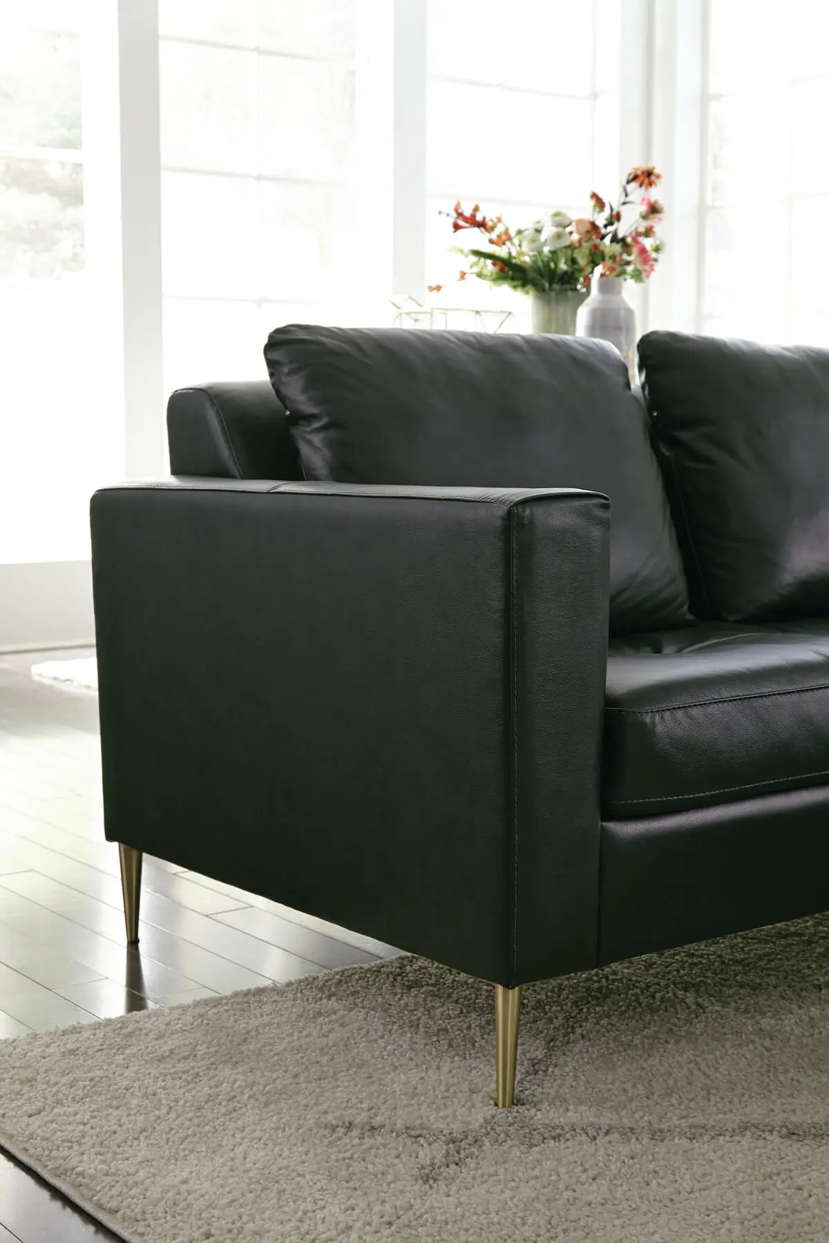 The attention to detail on loose fibre-filled back cushions are balanced by a refined topstitching detail on the seat and arms makes a sophisticated modern sofa. The fascinating leg options of antique brass or matte black are durable.