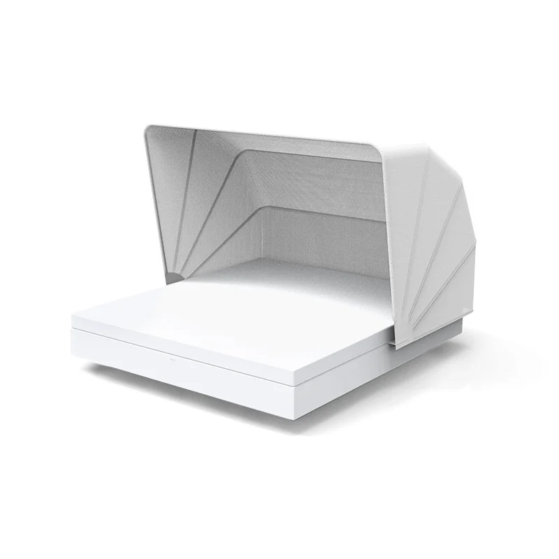 Enjoy shaded relaxation on the Vela Basic Daybed (200x180x40) with Folding Canopy. This spacious platform features a clean, geometric form and an integrated canopy for adjustable shade, perfect for luxurious outdoor lounging.