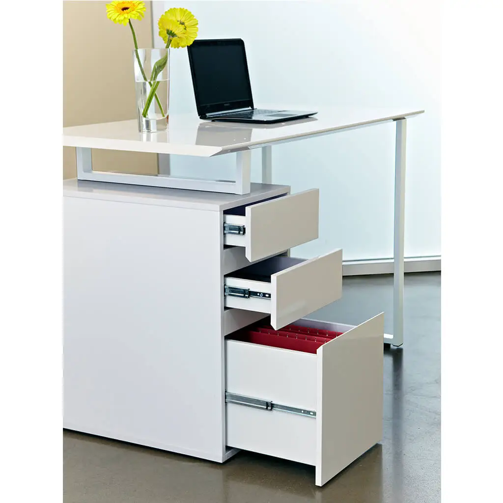 This desk is perfect for small spaces. With built-in drawers and a file cabinet, you have a compact home office that will fit any small space. Help create the ideal workspace in your home or office with this contemporary desk.