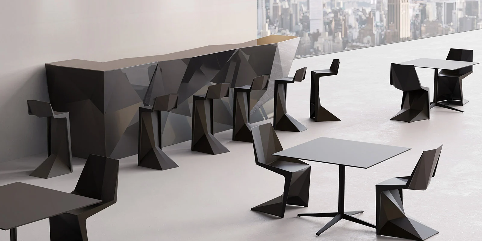 Bring geometric precision to your outdoor bar with the Voxel Bar Stool. Its faceted design and clean lines offer stylish seating at bar height, adding a contemporary, architectural touch to your outdoor entertaining space.