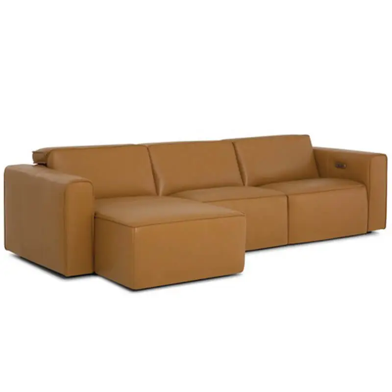 A contemporary clean look. Low to the ground lines and reclining power seats that provide ultimate comfort. A full chaise power footrest is adjustable and will support your legs as the power headrest invites you to lean back and relax. Customize & configure this piece with our designers to fit your space! Available in different cover options in both leather & fabric.