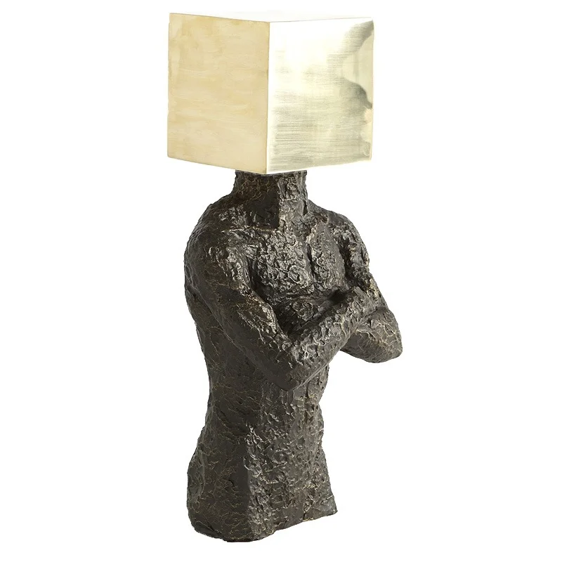 The CubeHe is a whimsical sculpture created from cast iron with a brass geometric head. The exaggerated texture of the body with the juxtaposition to the smoothness of the head makes it the perfect conversation piece!