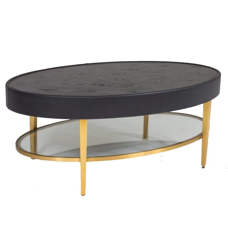 An evocative marriage of golden painted metal (iron), black cowhide leather and black stained wood that allows the natural grain of the wood to still be seen in forms redolent of the upbeat 1920’s! Completely on trend for today’s mood and style; sensual, provocative, and flirtatious.