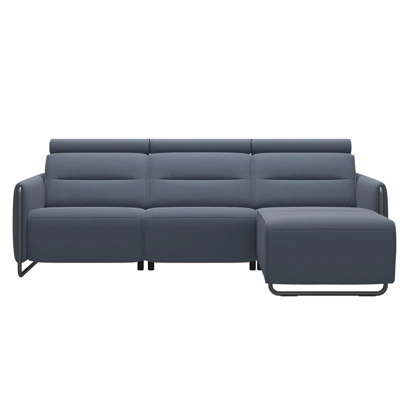 Sleek lines with a modern look give Stressless Emily an embracing appearance. The contemporary design of the soft enveloping cushions invite you to sit down and relax. All seat modules come with an adjustable headrest. Either with fixed seat-back or fitted with motors for personal adjustment of back and leg support. Choose between either steel or wood details on the armrest. The recliners Stressless Tokyo and Stressless View both couples up nicely with the Stressless Emily sofa.