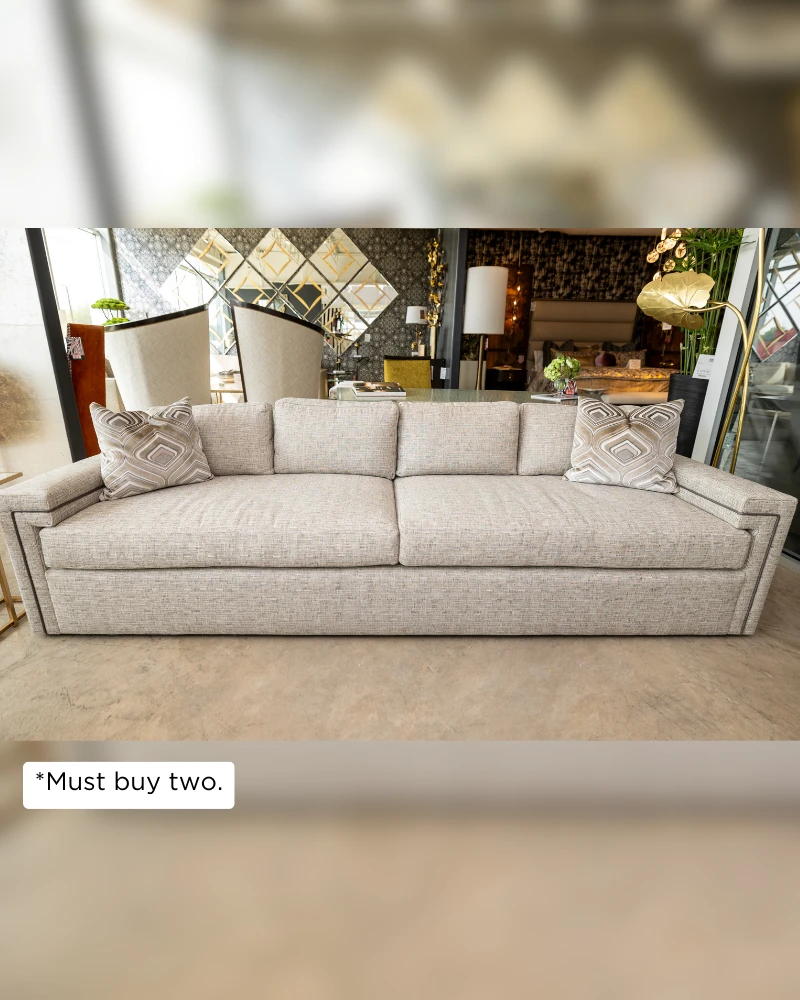 Lucas by Century offers a spacious and luxurious sectional sofa, upholstered in a textured light grey fabric that invites relaxation. The clean lines and neutral tone ensure that it will integrate seamlessly into a range of interior designs.