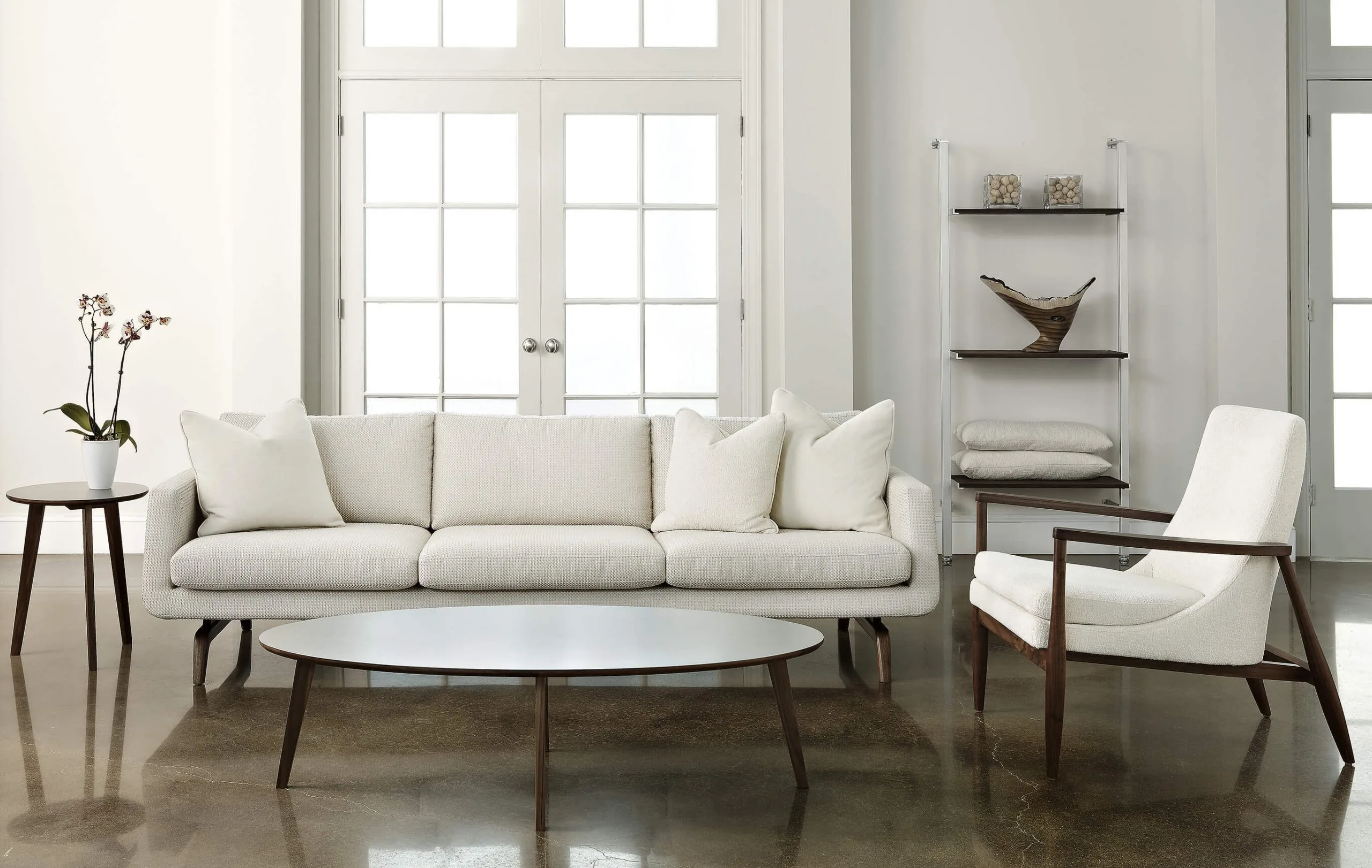 Nash sofa is designed by John Mascheroni in which generates a dazzle effect as the sofa performs to levitate by the luxurious legs where you can have the option to choose Walnut or Ash.