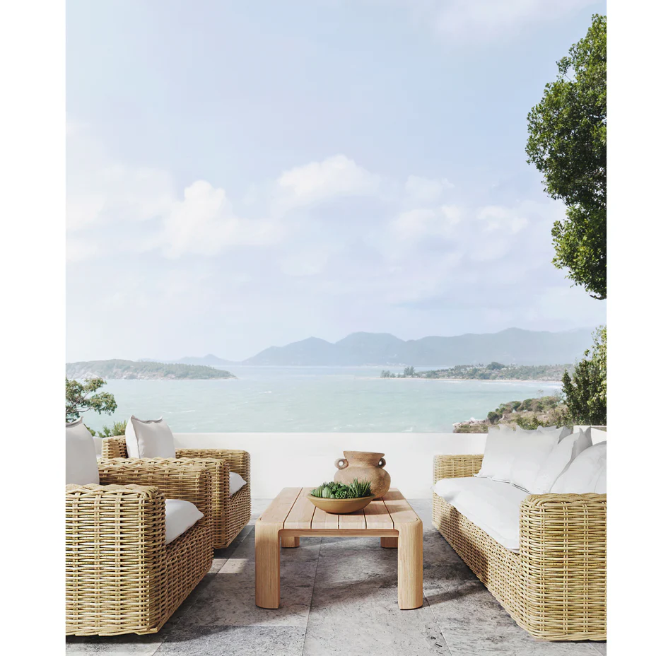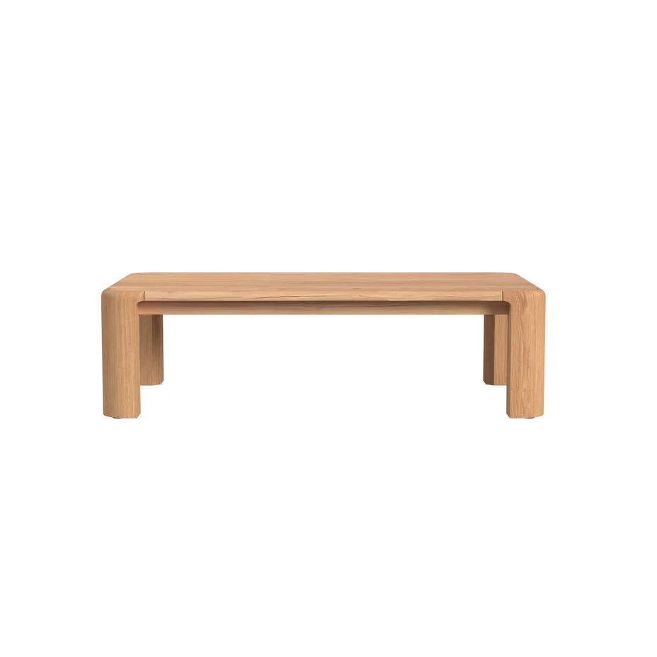 Ground your outdoor lounge space with the understated elegance of the Natural Teak Coffee Table. This table highlights the natural beauty and durability of teak wood in a clean and contemporary design.