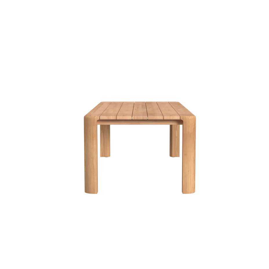 Host stylish outdoor gatherings with the Natural Teak Rectangular Dining Table. This table highlights the natural beauty and durability of teak wood in a clean and contemporary design. Offers ample space for dining and entertaining.