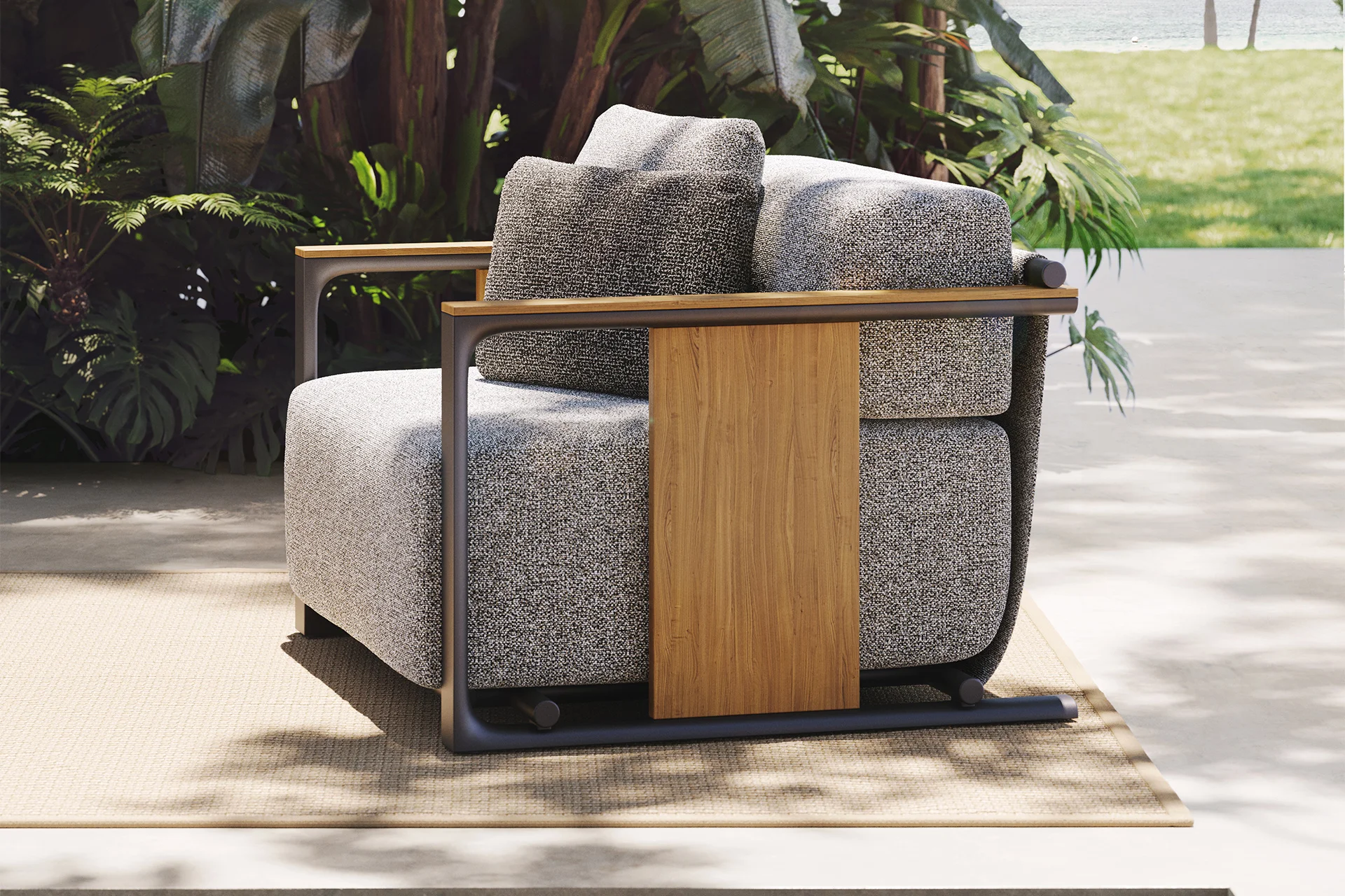 Sink into luxurious comfort with the Tulum Lounge Chair. Its generous, rounded form and deep seating create an inviting spot for relaxation, blending sculptural design with ultimate ease in your modern outdoor space.