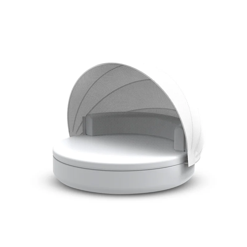 Enjoy shaded comfort on the Ulm Daybed with Fixed Backrest and Folding Canopy. Its smooth, rounded form provides a supportive place to relax, while the canopy offers elegant protection from the sun outdoors.