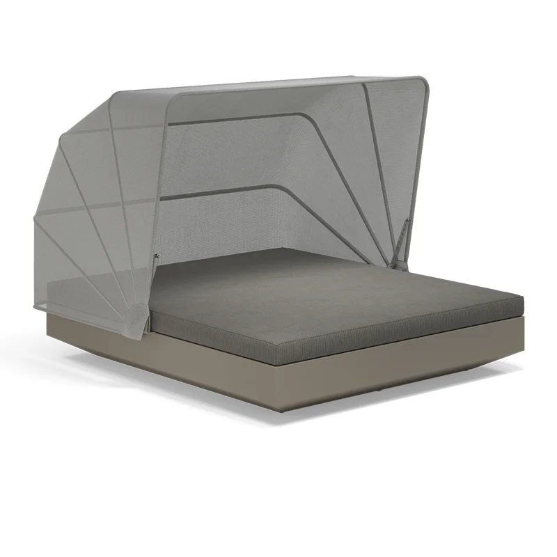 Enjoy shaded relaxation on the Vela Basic Daybed (200x180x40) with Folding Canopy. This spacious platform features a clean, geometric form and an integrated canopy for adjustable shade, perfect for luxurious outdoor lounging.