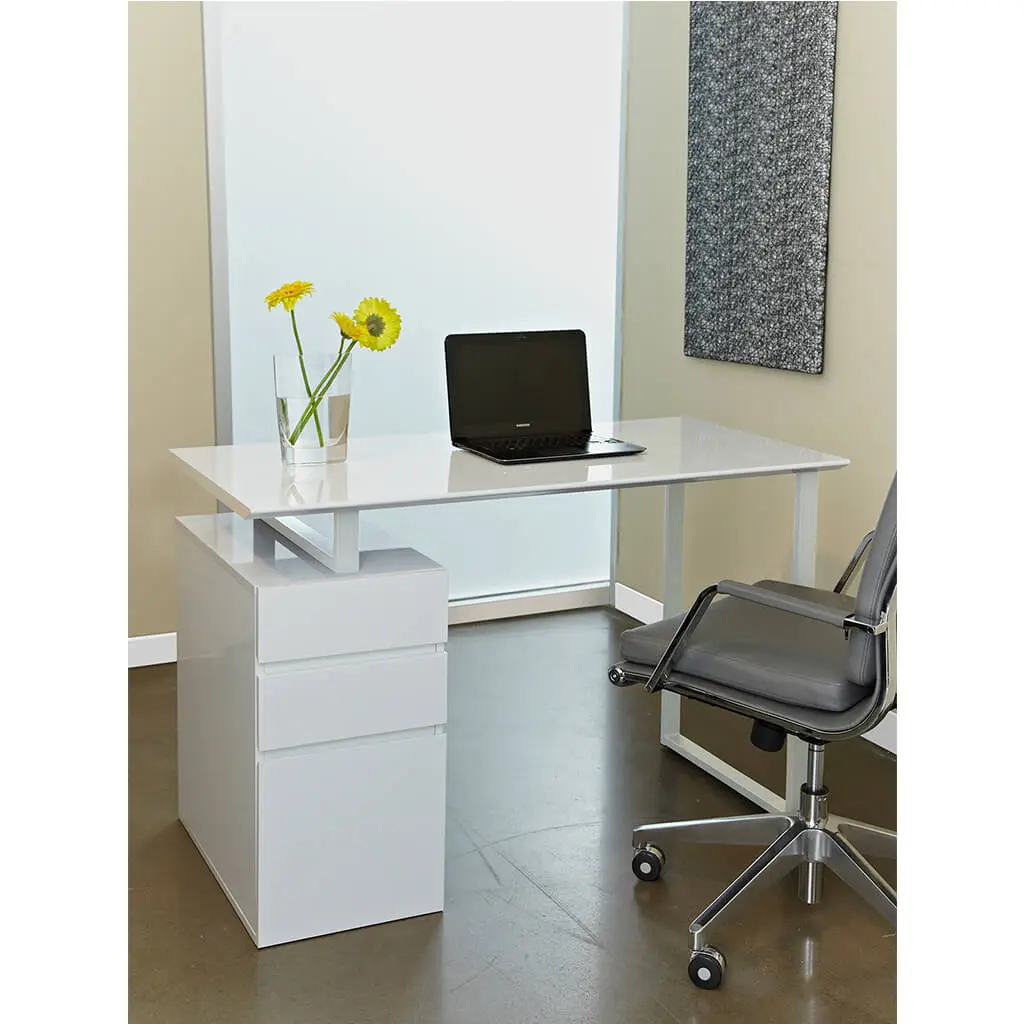 This desk is perfect for small spaces. With built-in drawers and a file cabinet, you have a compact home office that will fit any small space. Help create the ideal workspace in your home or office with this contemporary desk.